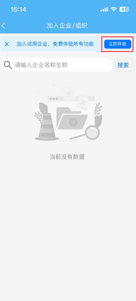 2、点击右上角的【立即体验】即可一键加入到试用企业。