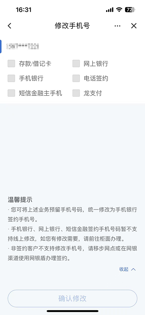点击底部的“修改”选项,输入新的手机号即可完成更换。