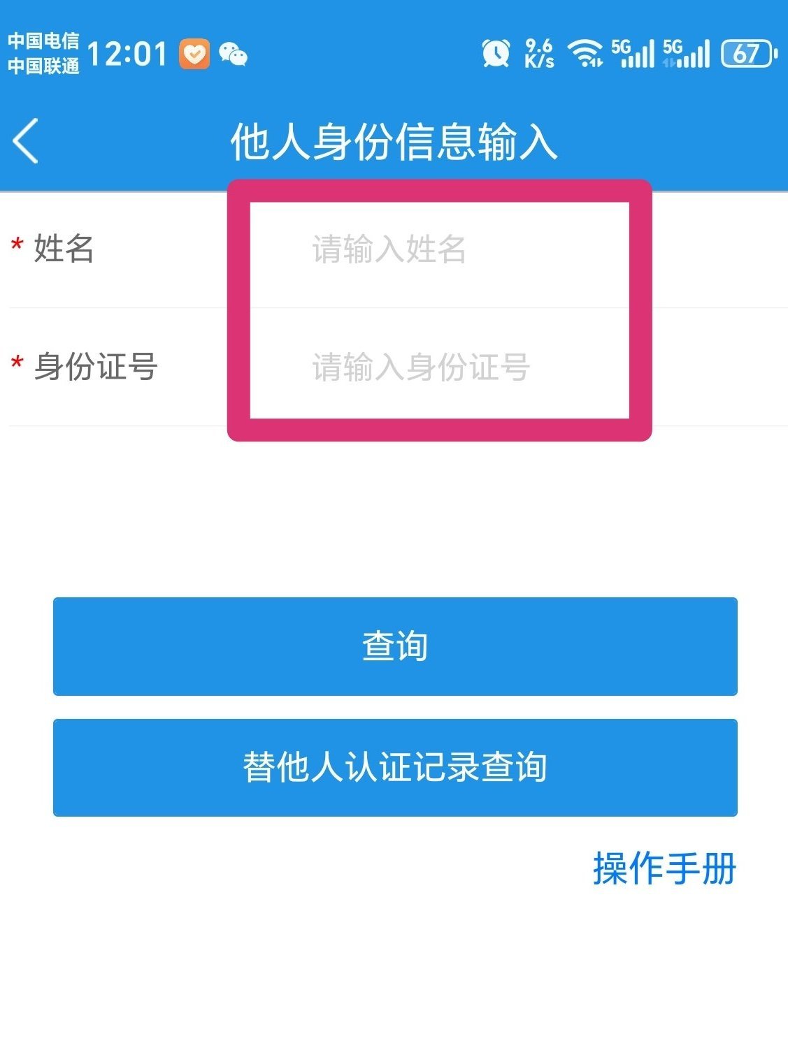 2、已经到了退休年龄的人员,直接点本人认证就能看到认证的信息。如果是他人认证的,就需要输入他人的“姓名和身份证号”,点击他人认证记录查询。“他人认证”是需要人脸识别的。