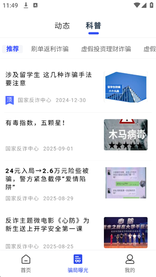 4、此外,App内还设有诈骗曝光专区,实时更新各类诈骗案例与预警信息,帮助您第一时间掌握最新的防诈动态。