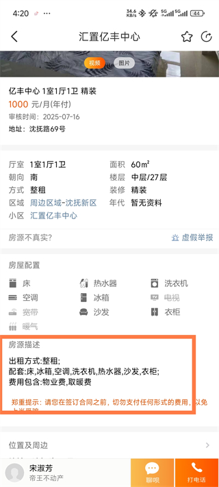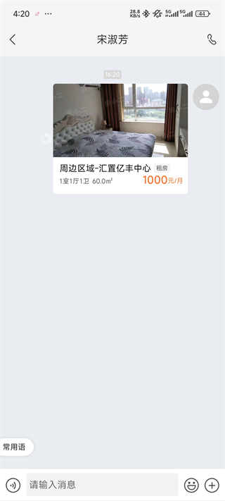 3、选择好后,可以看到有房源描述和多少钱一个月,点击私聊