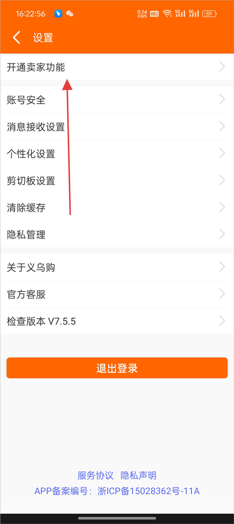 3、找到【开通卖家功能】选项并点击进入申请页面。