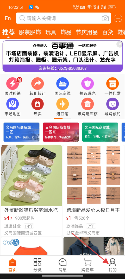 1、打开义乌购App,进入首页后点击右下角的【我的】进入个人中心。