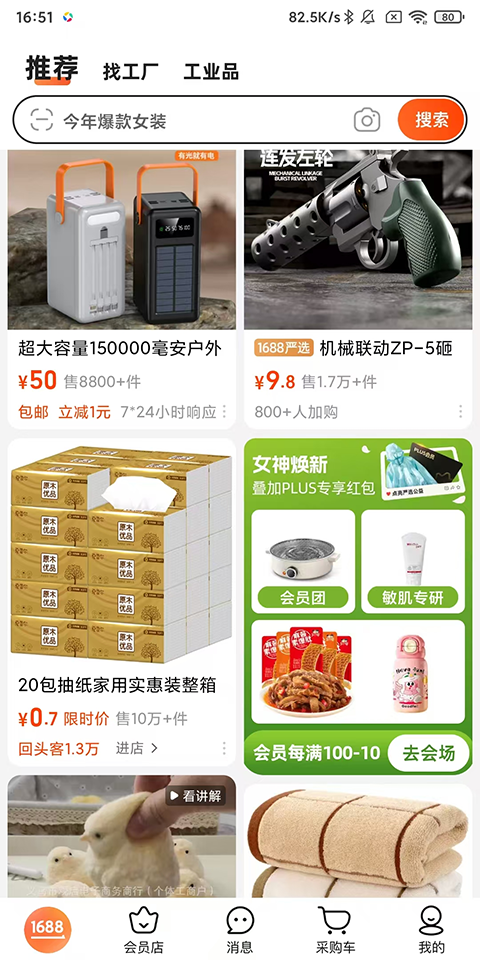 阿里巴巴1688App是一款B2B电商批发采购软件,集商品搜索、浏览、采购、订单管理、物流跟踪以及店铺管理于一体!在这里你可以找到海量的源头厂家直供商品,涵盖各个行业领域,包括服装、家居、电子产品、食品等,支持全球优选、一键采购!阿里巴巴1688还有社区功能,用户可以在这里与其他买家交流购物心得、分享购物经验或者发布求购信息。同时为用户提供便利的分销渠道,帮助卖家快速拓展销售网络;也便于买家寻找和采购商品,实现快速铺货至自己的店铺或销售渠道。