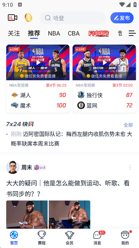 涵盖NBA、欧冠等十余项赛事,最全面的视频直播与点播;