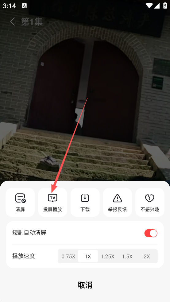 2、进入播放界面后,点击屏幕会弹出功能窗口,点击【投屏播放】