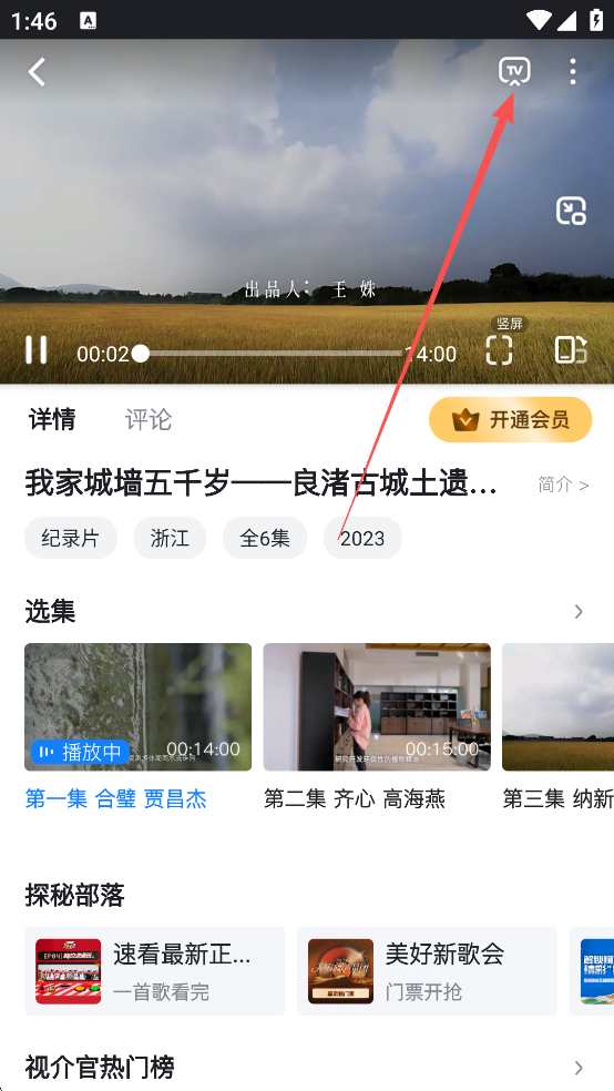 2、点击任意想投屏的视频内容,然后点击播放窗口右上角的“TV”图标