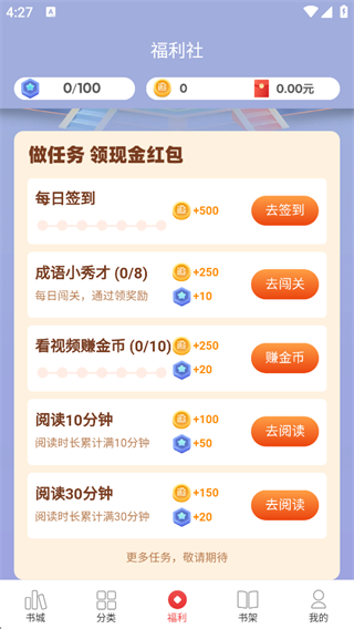 5、点击他就会跳转到福利社这里可以完成一些任务获得现金红包