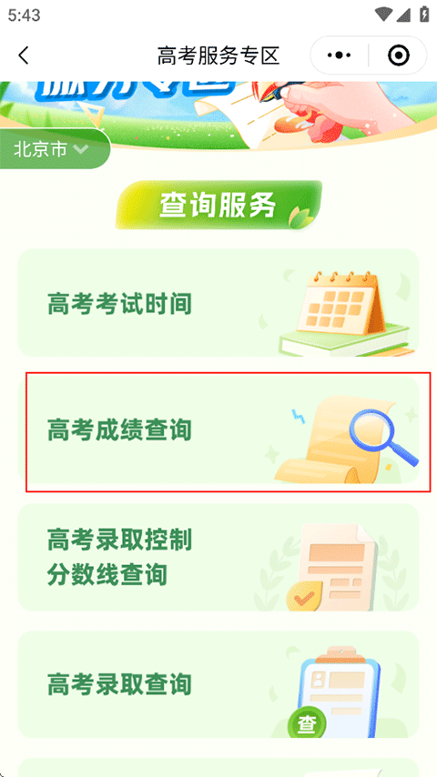 4、点击高考查询功能,进入后输入身份证号、姓名以及准考证等信息即可查询高考成绩。