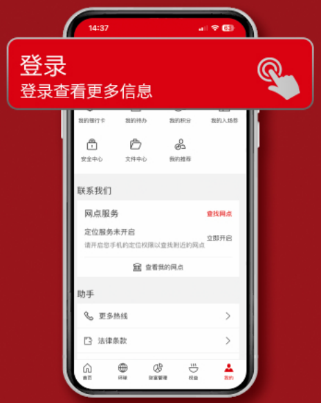 通过个性化界面管理借记卡和信用卡,轻松使用存款、转账、外汇、理财、信用卡等多项银行服务。