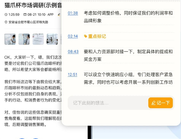 办公会议,商务洽谈,一键录音,轻松记录会议内容,快速转成文字输出会议纪要及快速分享。