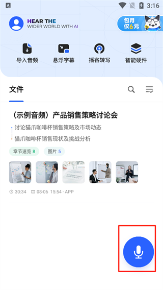 打开软件点击右下方麦克风按钮即可开启录音,点击下方标记图标或拍摄图标