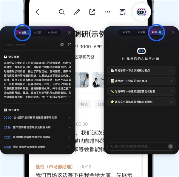 点击悬浮窗或右上方“小谛”按钮查看AI实时总结