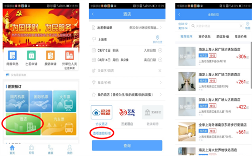 在公务之家APP内预定酒店,可选择“协议酒店”或“艺龙酒店”,将统一提供住宿单电子凭证。