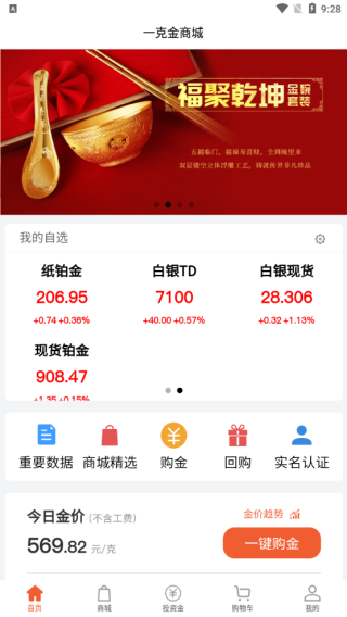 一克金App是苏投黄金的自有品牌电子商城软件,致力于为用户打造一个便捷、安全的黄金购物平台,软件提供如投资金条、黄金首饰、贵金属工艺摆件等多种黄金饰品,且都经过了专业检测,品质有保证,不用担心买到有瑕疵的金饰。除了出售黄金以外,软件还提供了国内外实时金价波动数据,以便用户进行黄金线上回购。