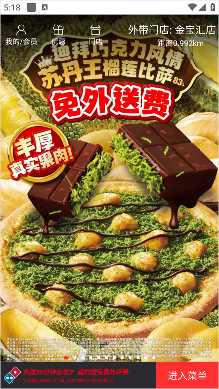 1、打开达美乐比萨App,选择好你需要自提的披萨