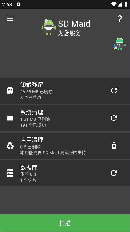 SDMaid最新版也称之为SD女佣,是一款非常强大专业的手机储存卡垃圾文件清理工具,原生简体中文,无广告、功能非常全,且占用空间较少,操作简便。由于运行在超级权限之上,所以能够对系统垃圾进行清理,非常给力,是手机SD卡垃圾清理安卓必备之利器!感兴趣的用户欢迎前来下载体验!
