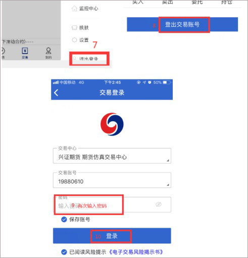 3、之后退出交易账号,使用交易密码再次登录交易账号;