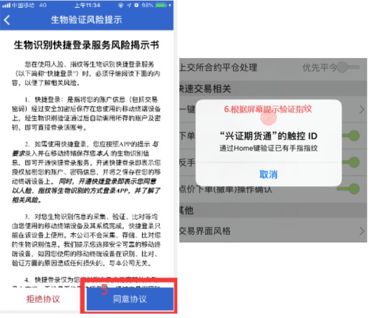 4、指纹登录激活成功后,下次登录交易软件可以直接使用指纹验证登录。