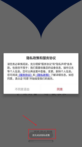 1、在本站下载安装并打开软件,首次打开需要先阅读服务协议与隐私政策;
