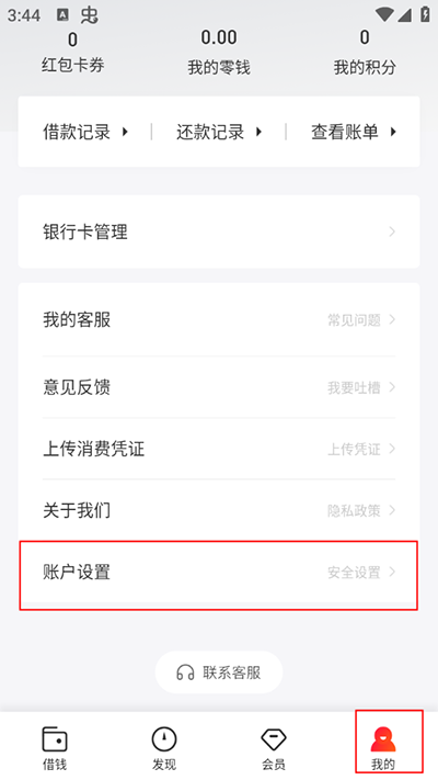 1、打开万卡App,点击【我的】,在点击【账户设置】