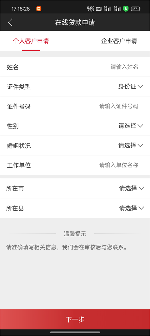 3、系统会提供两种申请类型:个人客户与企业客户。用户可根据自身需求选择对应通道进行申请。