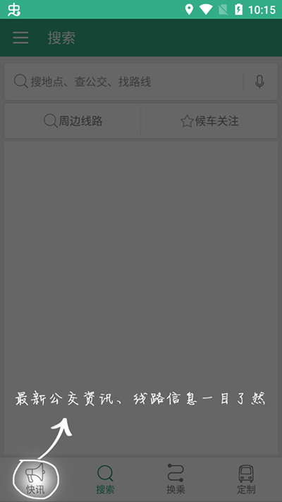 1、首先进入软件,在快讯中我们可以看到最近的公交信息,这样可以避免很多事情,比如公交改了路线,在这里都可以看到。
