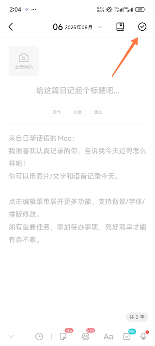 2、你也可以选择更换日期,记录过去或未来的事情。完成后点击右上角的【√】即可保存。