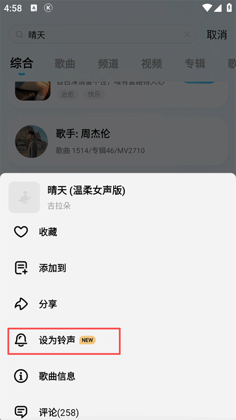 4、根据需求选择设为来电/通知/闹钟铃声即可!