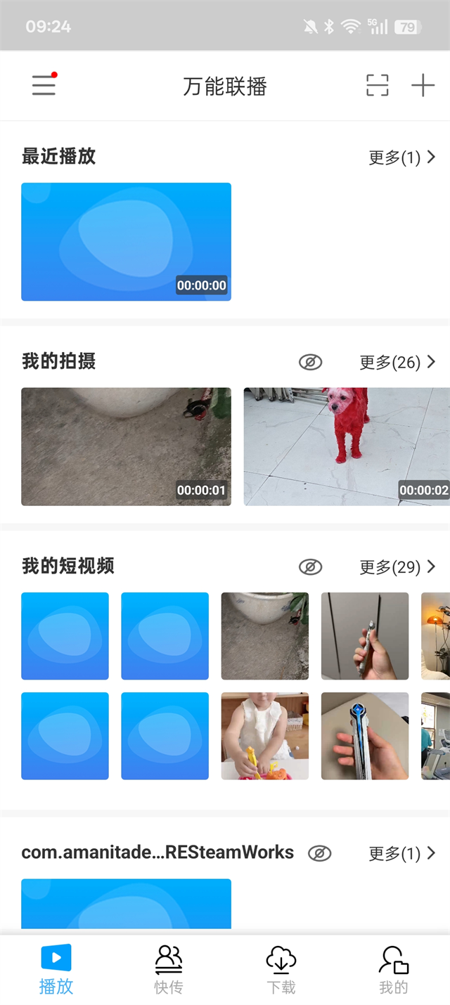 在软件首页的播放功能模块中,你可以播放自己相册里的所有视频内容