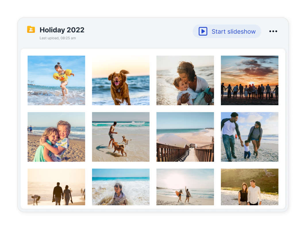 启用相机上传,这样您设备上的所有照片都会自动存储在MEGA上。然后你可以启用幻灯片,坐下来,享受照片给你带回的珍贵回忆。