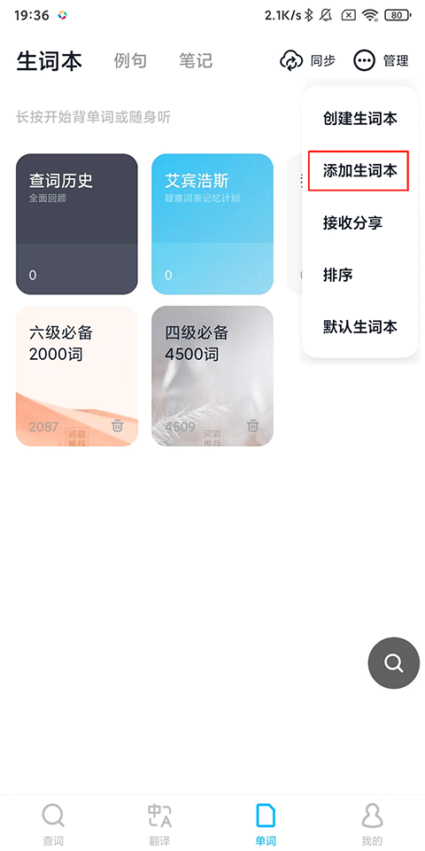 4、添加成功,前往单词页查看。