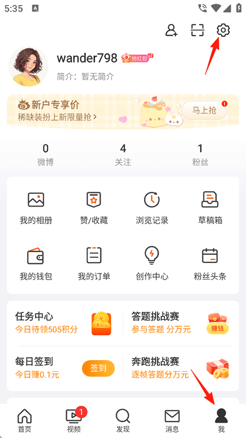 1、打开新浪微博移动版,点击“我”-“设置”;