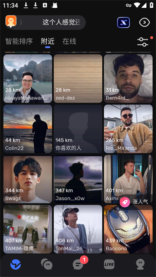 blued国际版是一款倡导积极健康,公益生活的兴趣社交软件。精准的地理定位功能,让你可以发现和找到身边志同道合的朋友,查看他们的个人资料、动态和相册。还可以根据自己的兴趣爱好进行多维度的匹配, 加入不同的兴趣群组与大家一起互动。你还可以随时向感兴趣的网友发送消息、语音、照片和小视频。 另外,还有新鲜、好玩的直播功能,你可以关注喜欢的主播或自己申请成为主播,随时随地通过视频直播分享你的真实生活,让你结交更多有趣的人。