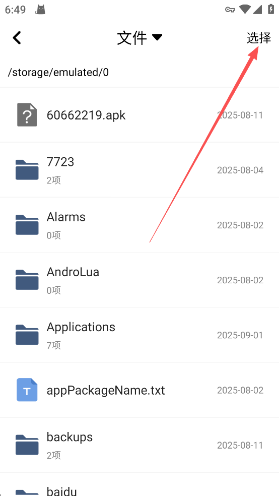 2、然后点击右上角的【选择】选中你需要压缩的文件