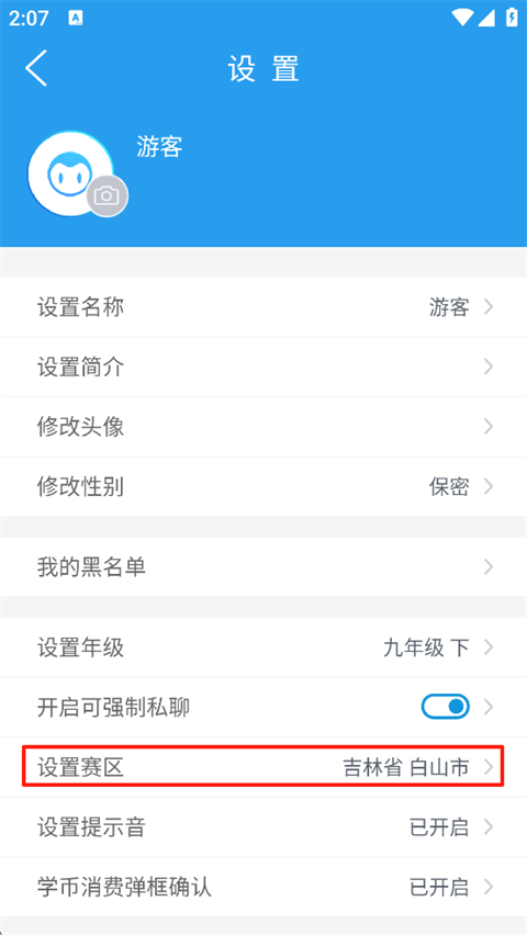 4、选择新赛区即可成功更改