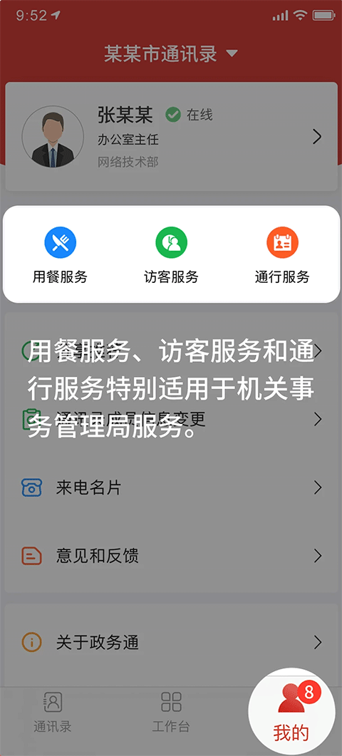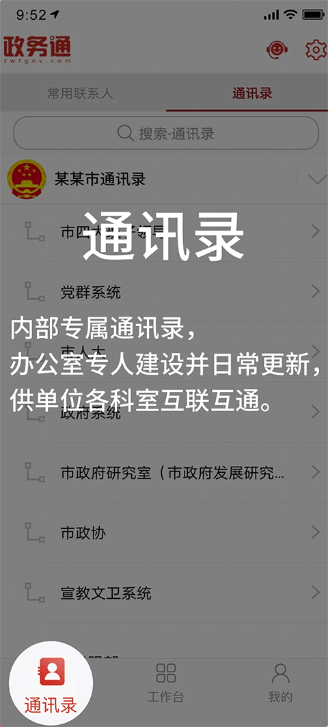 1、内部专属通讯录,办公窒专人建设并日常更新,供单位各科室互联互通;