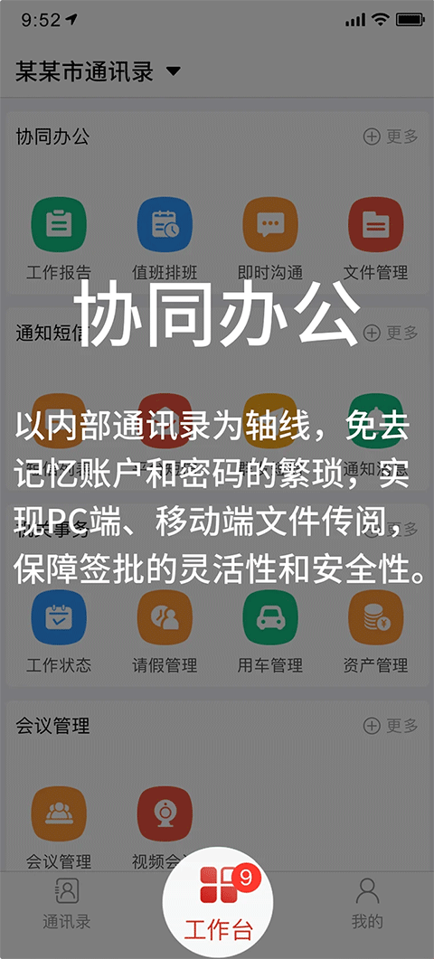 以内部通讯号码为轴线,免去记忆账户和密码的繁琐,更加方便对于文件的灵活传阅和签批,尤其适用于人事变动频繁、分工灵活的政府单位。