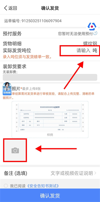 3、根据提示选择摘牌人及承运的车辆,选择是否需要优惠加油/汽、购买货物安全保障、运费保障以及人身安全保障服务,完成后点击【确认抢单】。