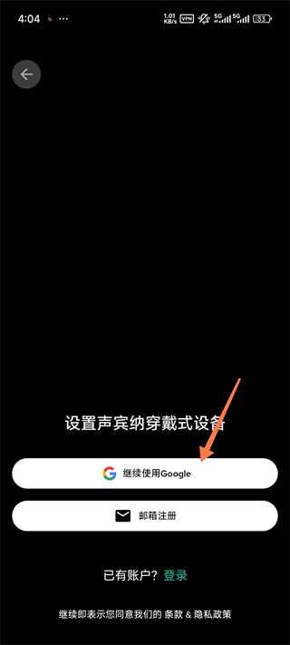 1、打开软件选择一种方式登入,如无法使用谷歌登录,可使用邮箱注册登录