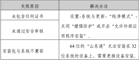 答:安装失败的情形与解决办法主要包括: