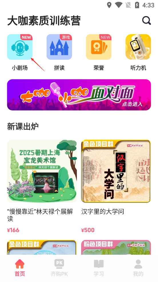 1、打开大咖素质App,点击小剧场