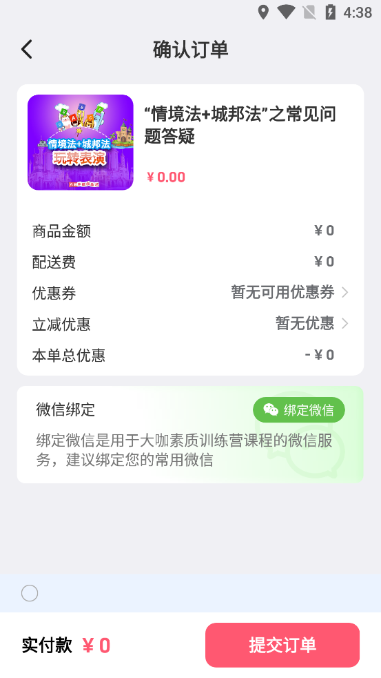 3、可以看到是0元点击提交订单