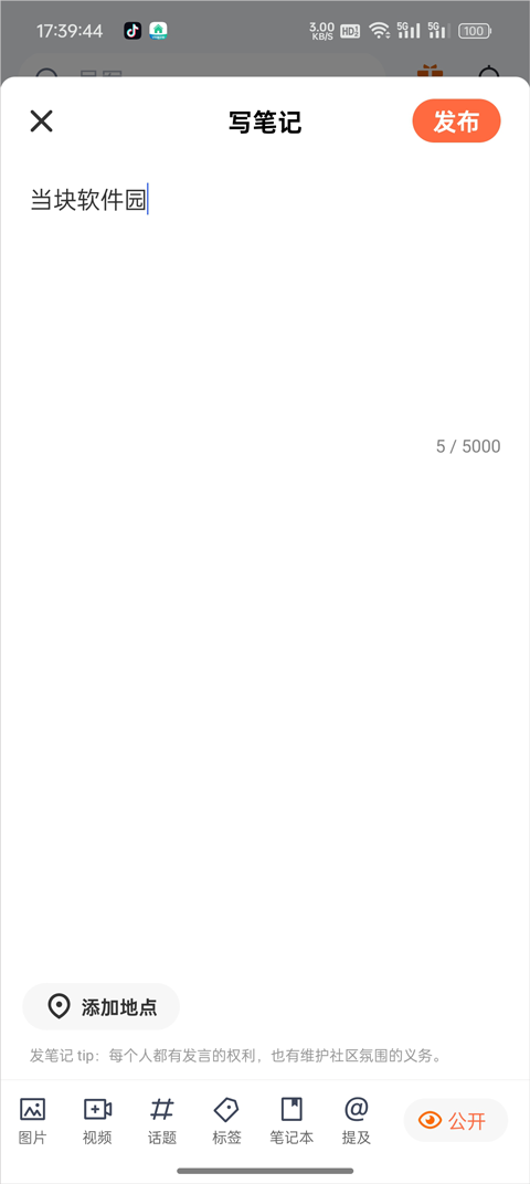 3、紧接着撰写你需要发表的笔记,然后点击发布即可