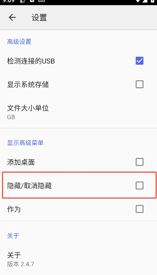 先点击首页右上角的三个点进入「设置」选项,确保选中其中的「隐藏/取消隐藏」选项;
