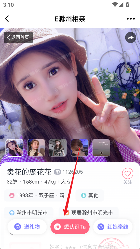 5、最后点击「想认识TA」按钮,即可发起联系,迈出脱单第一步!