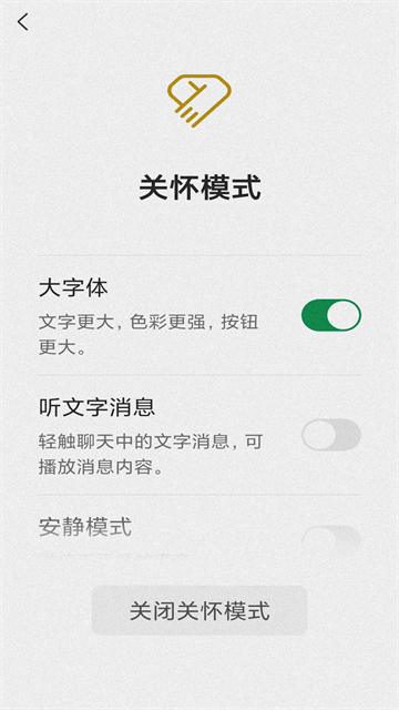 - 关怀模式:文字与按钮更大更清晰。