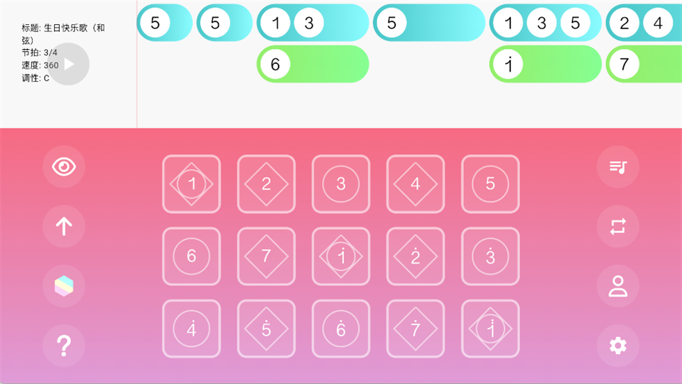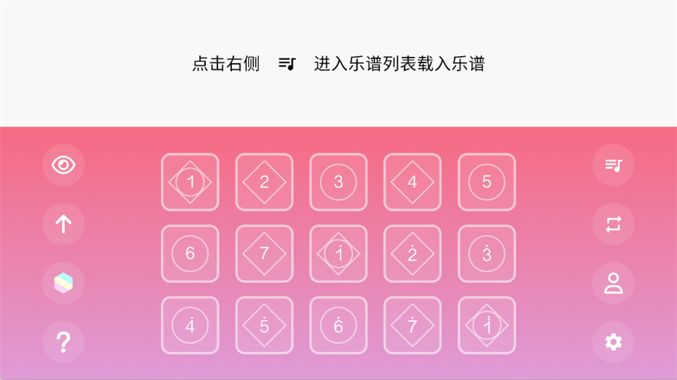 1、打开光遇乐谱官方正版后,进入核心演奏界面。点击右上角的三条杠按钮,进入乐谱列表,选择你想要练习的曲目。左侧按钮可用来切换不同的键盘布局和音效,帮助你更好地适应演奏需求。