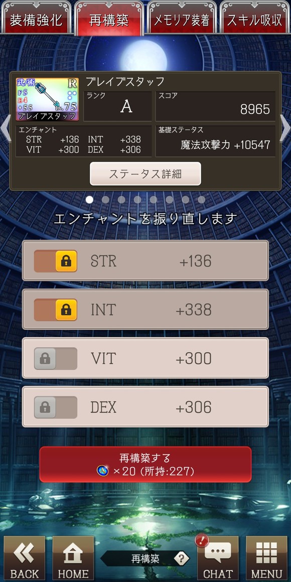 装备管理的第二栏是再构建,我个人觉得没啥用,可能大佬会用来细调属性。再构建时可以选择锁住最高两个词条,然后洗另外两个词条(钱多的没地方花的大佬可以玩玩)