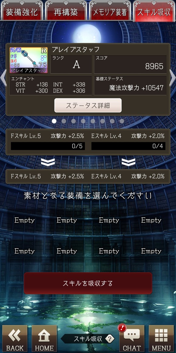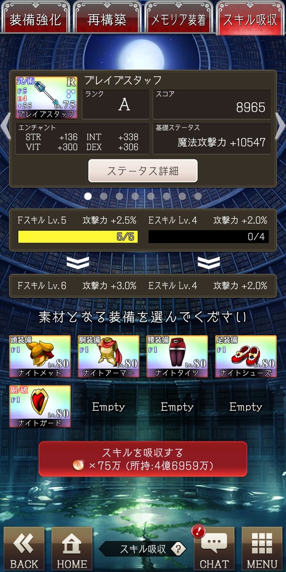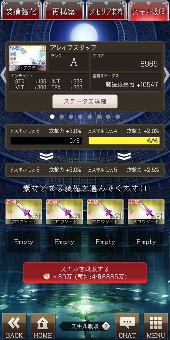装备管理的第四栏就是装备吸收了(国产页游再次:???),这个比较头疼,因为分为两种吸收,f和e,下面细说两种的区别